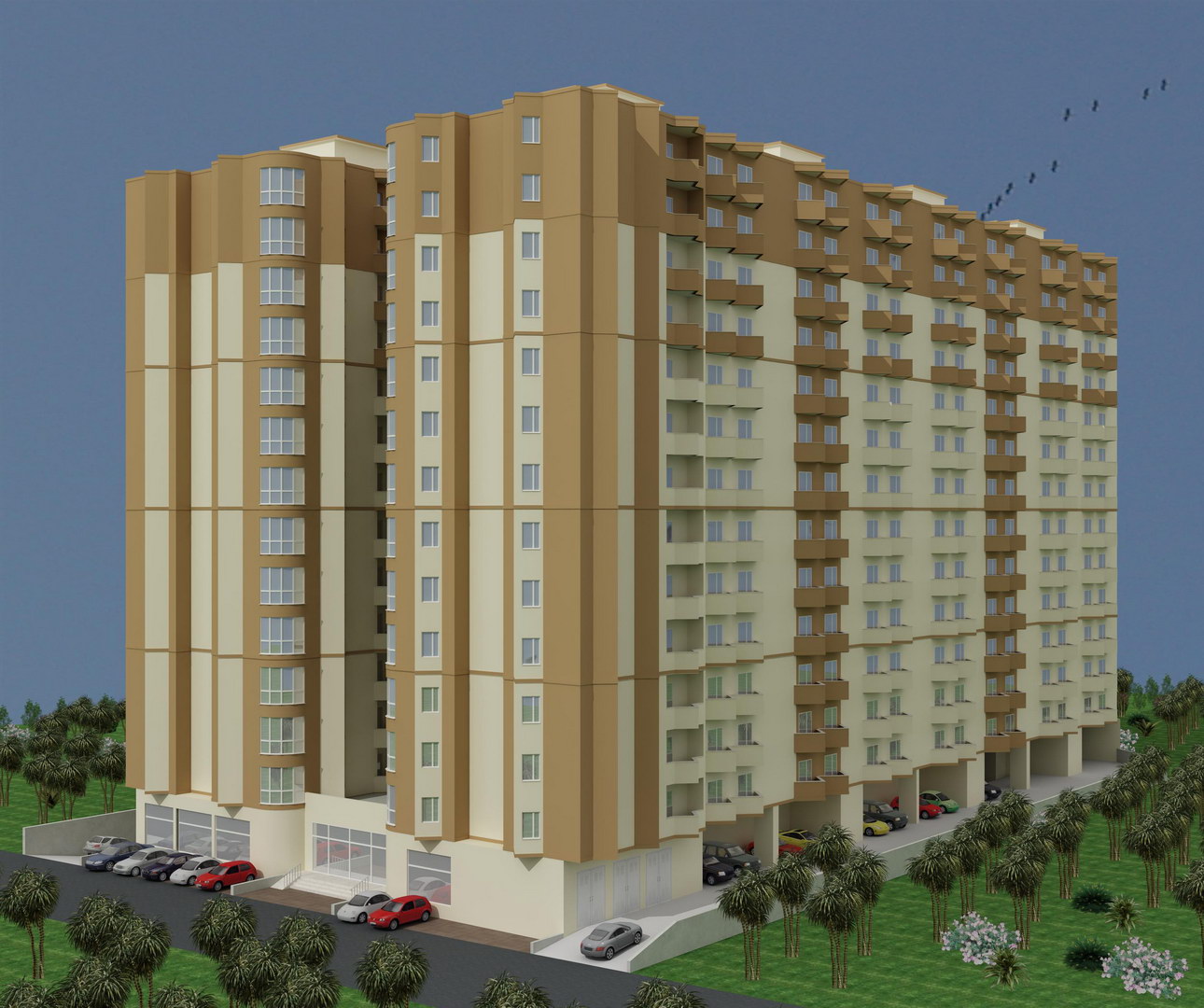 41.200 m2 alanda park, zemin üzerinde 13 katlı 2 blok olarak inşaa edilen proje 3 farklı tip daire ve her daire için kapalı otopark yeri içeriyor. Projenin tüm malzeme ve sistem tedariği Detay Yapı tarafından sağlandı.